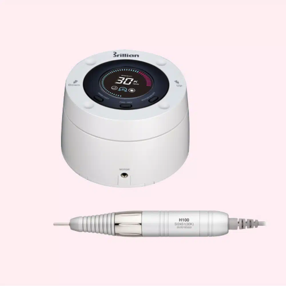 Deze nagelfrees van Saeshin heeft een ergonomischie vorm en is zeer stil. De motor is rond en wordt bediend door middel van het draaien van het bovenste deel van de machine. De schermweergave is digitaal en dankzij de kleine knopjes boven op de machine zet je de nagelfrees aan/uit, forward/reverse of op handbediening/voetbediening. De motor heeft een overbelasting bescherming waardoor een lange levensduur van de motor gegarandeerd is.