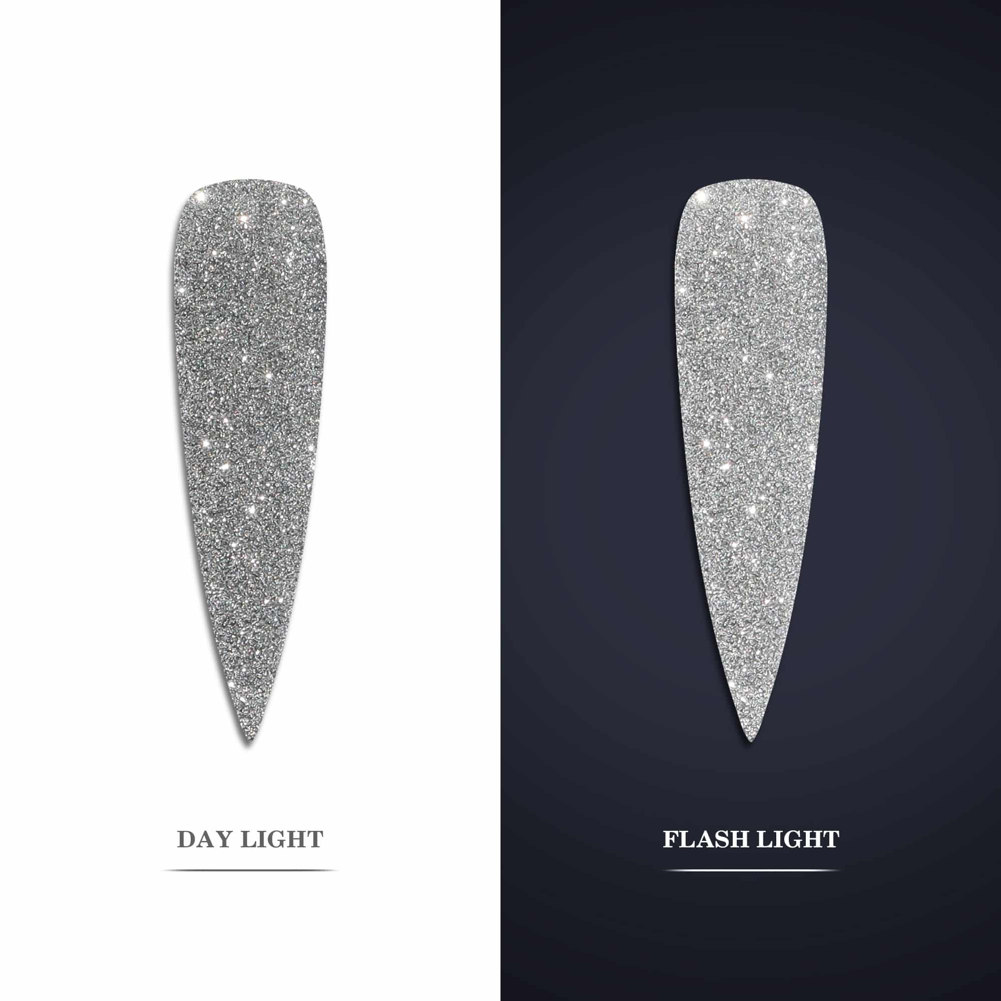 Terwijl je nagels op en neer bewegen in het licht, wordt de intensiteit van de glinstering aangepast, waardoor een indrukwekkend effect ontstaat