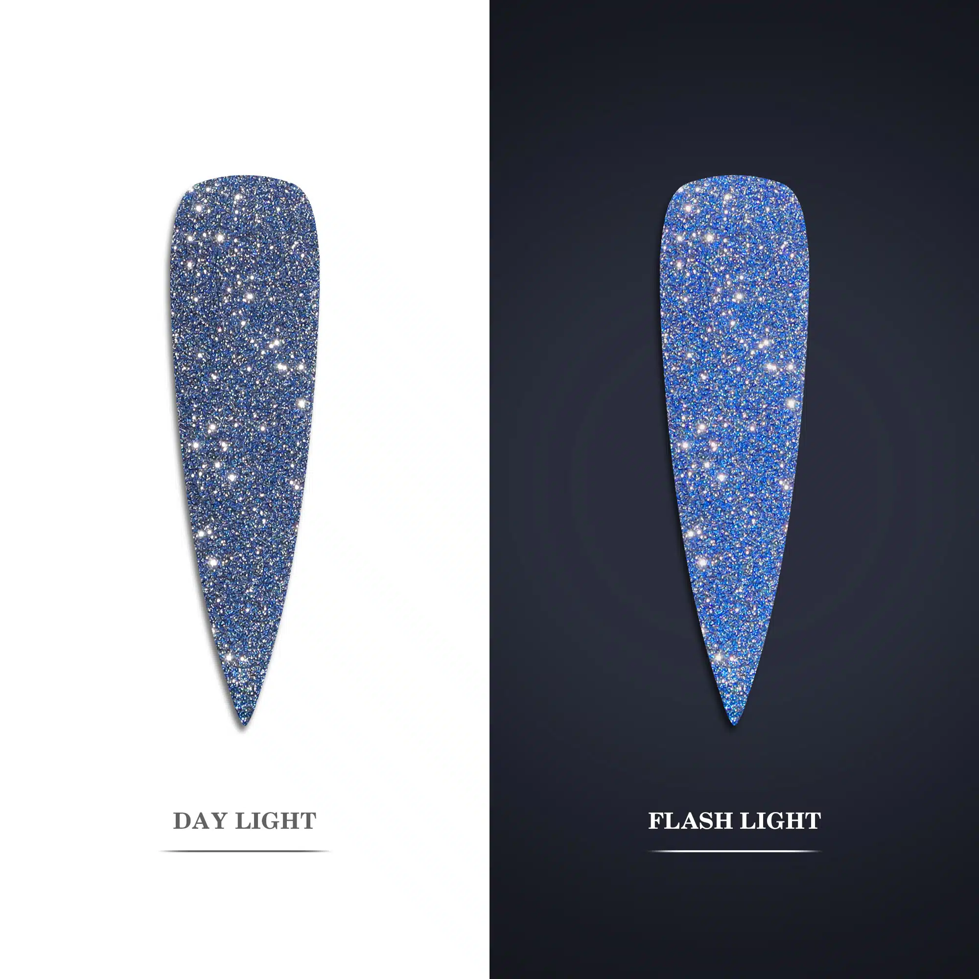 De Flash Powder is een fijnkorrelig poeder in 6 tinten met een kleine hoeveelheid zeer fijne glitters die bij blootstelling aan licht de neiging hebben een bijzondere reflectie te creëren met een indrukwekkend effect.