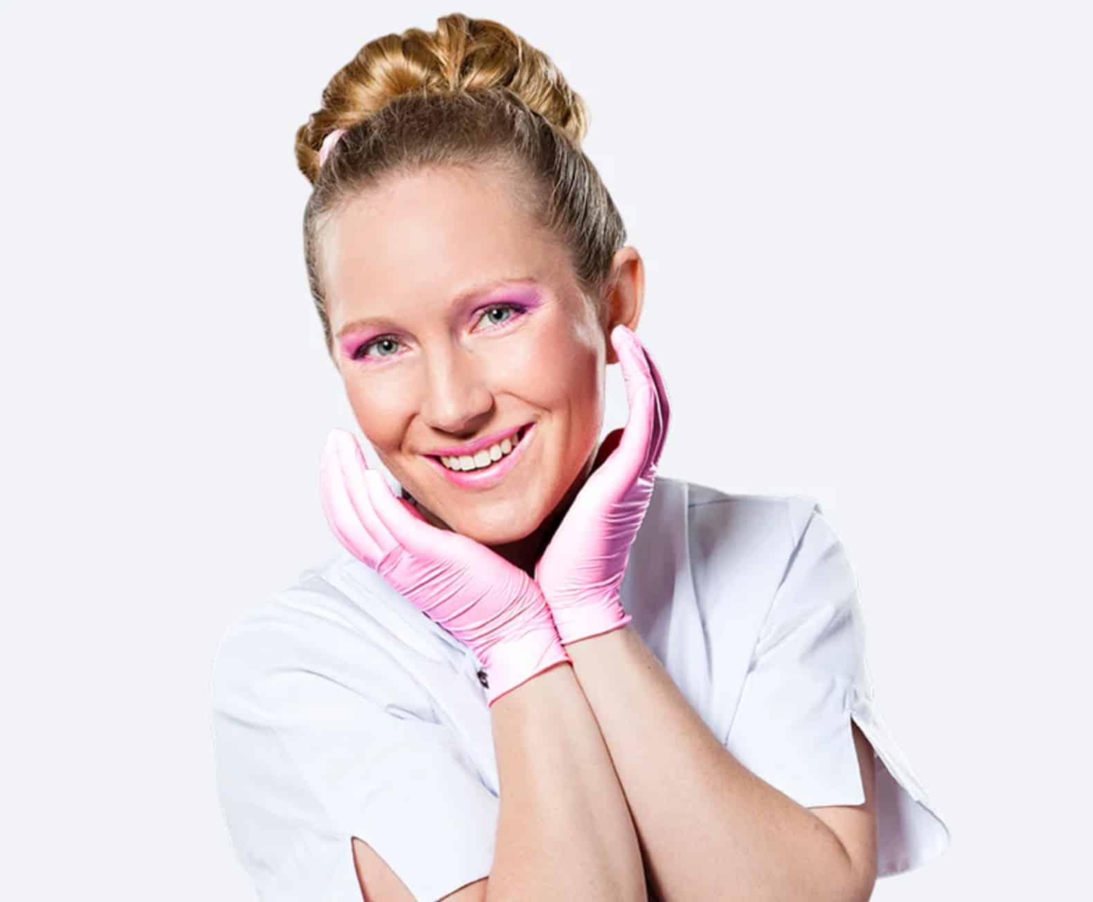 Deze handschoenen zijn zeer stevig en hebben op de vingertopjes verbeterde grip. De handschoenen zijn parelmoer roze en bieden jou de bescherming die je nodig hebt tijdens behandelingen.