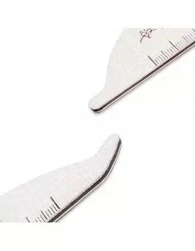 Met liniaalverdeling aan de rechte zijde, zodat je de lengte of breedte kunt meten van de nagels die je vijlt.