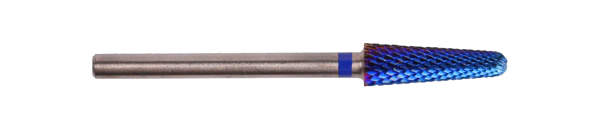 Blauwe hardmetalen bit (medium) . Conische vorm. Veilige afgeronde punt. Ideaal voor het verwijderen van gel, acrygel en acryl, evenals voor het verfijnen van de vorm van de constructie en het reinigen van de onderkant van de nagel. Diameter: 4 mm en koplengte: 13 mm.