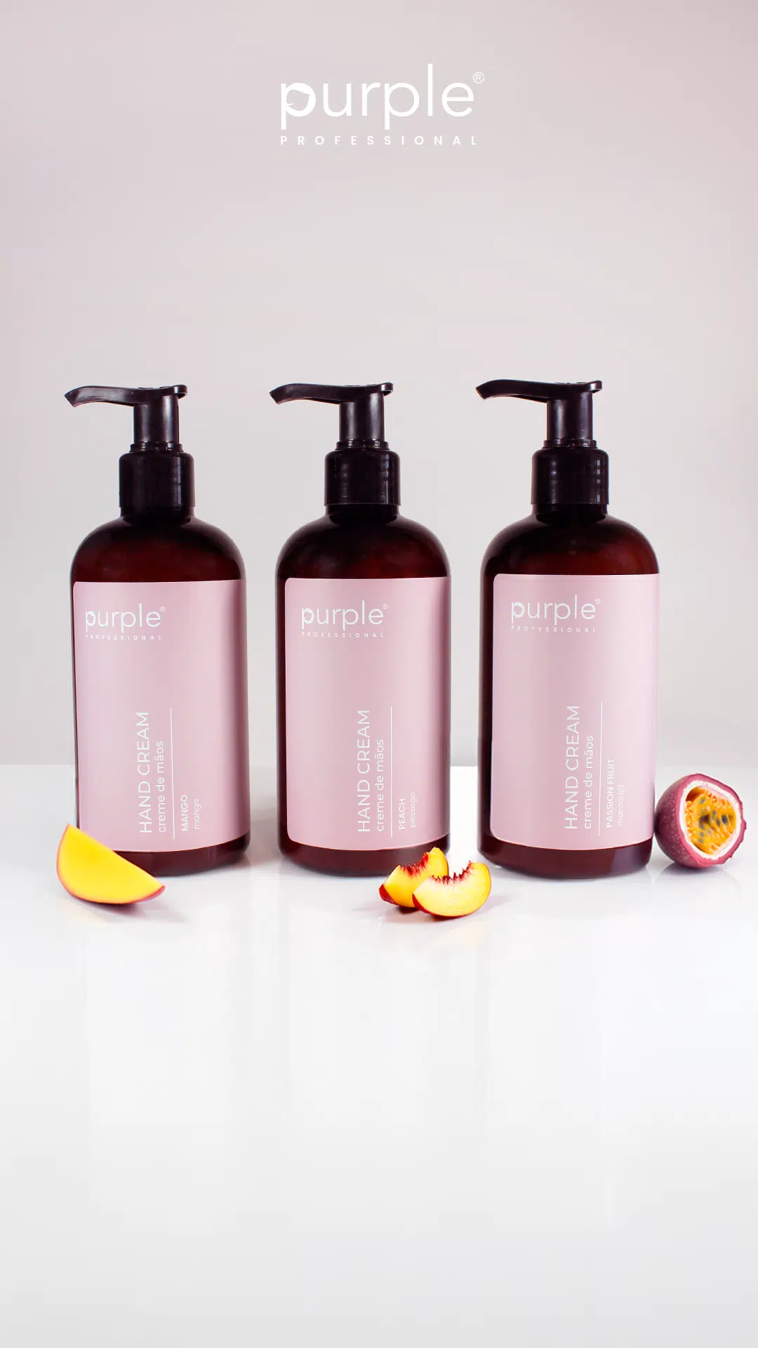 Purple Professional Handcrème met mangogeur . Verrijkt met provitamine B5 , vitamine E en zoete amandelolie. Hydrateert, regenereert en verzacht de huid van de handen en trekt snel in. Pompflacon van 300 ml .