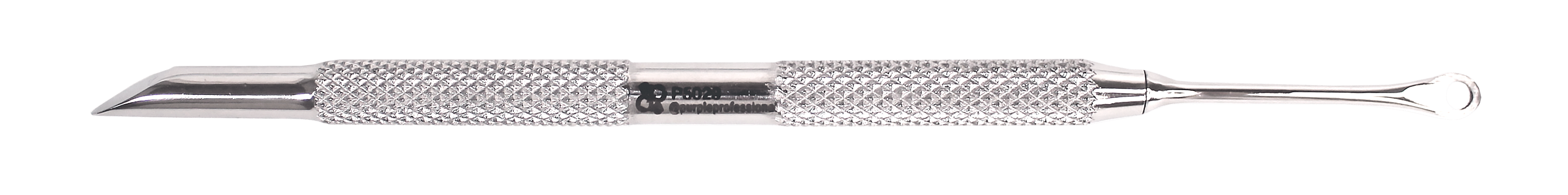 Purple Premium 13 Pusher van roestvrij staal. Deze Pusher heeft een afgeronde kant en een ringvormige kant aan de andere kant. De afgeronde punt past zich aan de vorm van de nagel aan en tilt de nagelriemen op om deze later te verwijderen. De ring (curette) maakt het mogelijk om huidresten op de nagelplaat te verwijderen en de nagelriemen te verwijderen. Functioneel, nauwkeurig en robuust ontwerp . Ontworpen voor professioneel gebruik. Geschikt voor alle soorten desinfectie.
