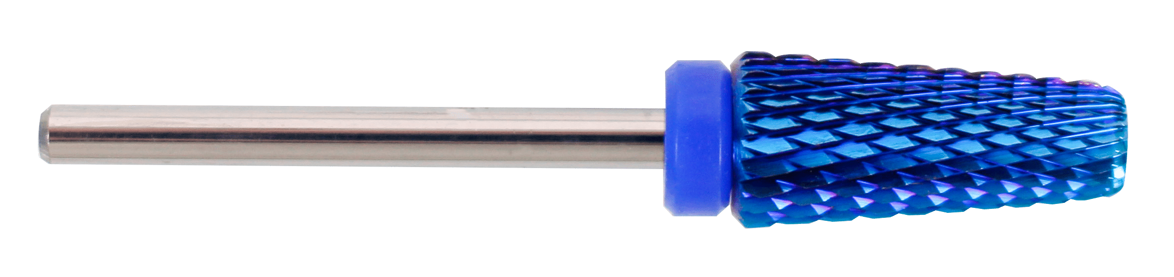 Carbide bit, blauwe hals (medium). Kegelvorm van het merk Purple. Ideaal voor het verwijderen van gel, acryl en acrylgel, evenals voor het verfijnen van de vorm van de nagelverlenging en het reinigen onder de nagel (bij een square). Diameter: 6,8 mm en koplengte: 15 mm.