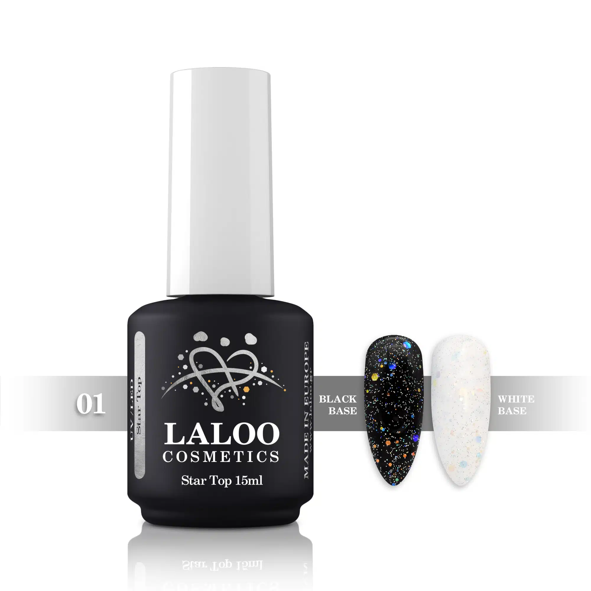 De nieuwe topcoats van LALOO COSMETICS zijn hier om te schitteren. Het zijn topcoats zonder plaklaag en kunnen over elke tint semi-permanente Gelpolish worden aangebracht om een nog indrukwekkender resultaat te bereiken.
