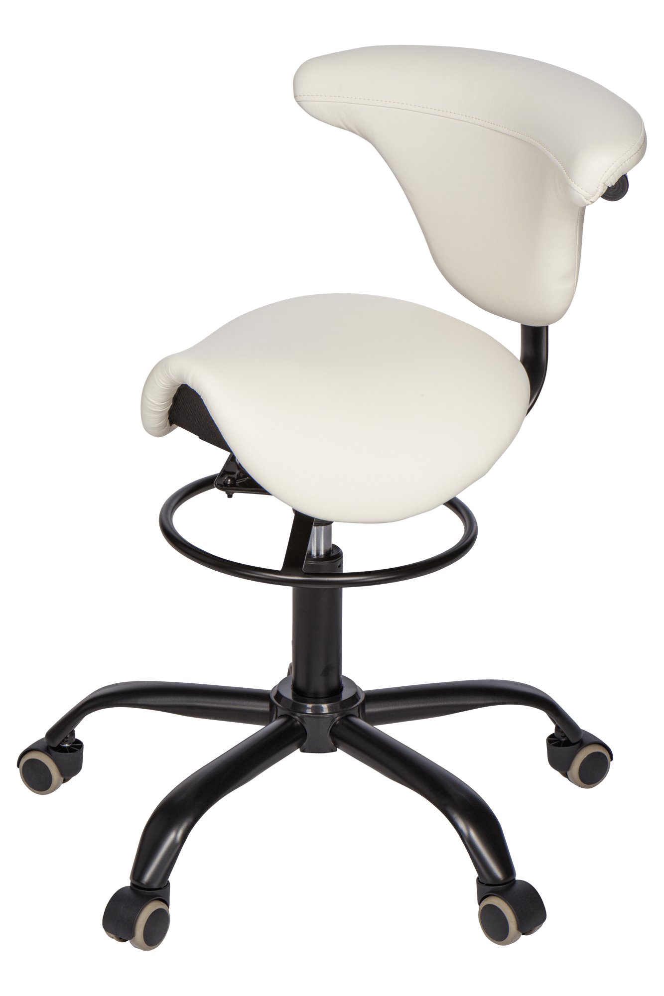 De zitting (zadelzit) is roteerbaar terwijl de rugleuning de oorspronkelijke stand behoudt. Dankzij het stevige maar zachte zitkussen, zit je super comfortabel. Dit garandeert een pijnloze zit gedurende een lange werkdag. Deze zadelkruk is geschikt voor alle beauty salons en biedt de nagelstylist, browstylist of schoonheidsspecialiste een comfortabele en ergonomisch verantwoorde houding tijdens de behandelingen.